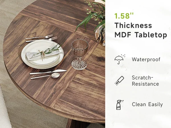 Dimension & Seating Capacity: 47.2"×29.5" round table comfortably seats 4-6, ideal for family meals or gatherings. Circular design encourages social interaction, with rounded edges to prevent surface scratches.