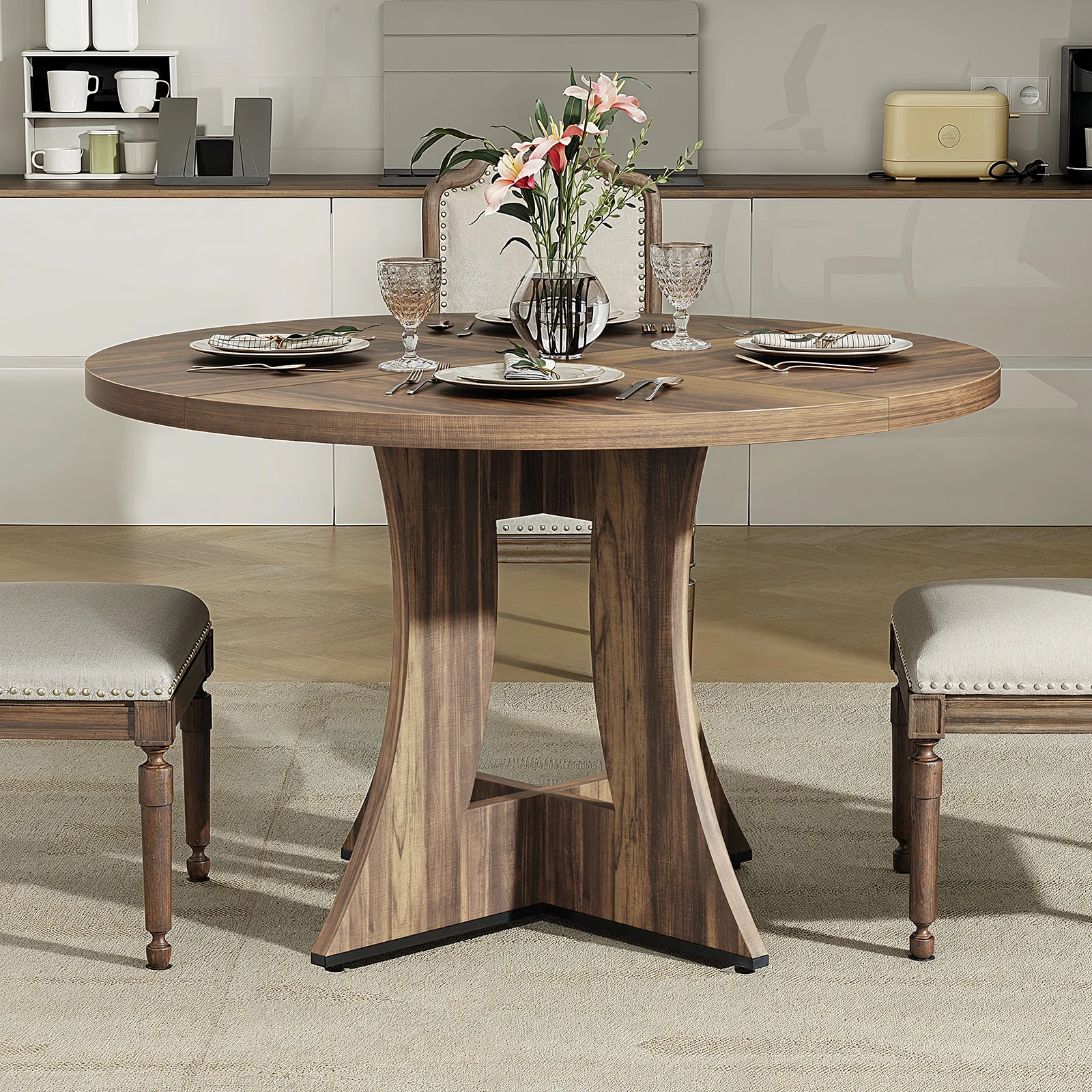 47.2 inch Round Dining Table, Wood Kitchen Table for 4-6 People, Small Circle Farmhouse Dinner Table for Dining Room, Restauran