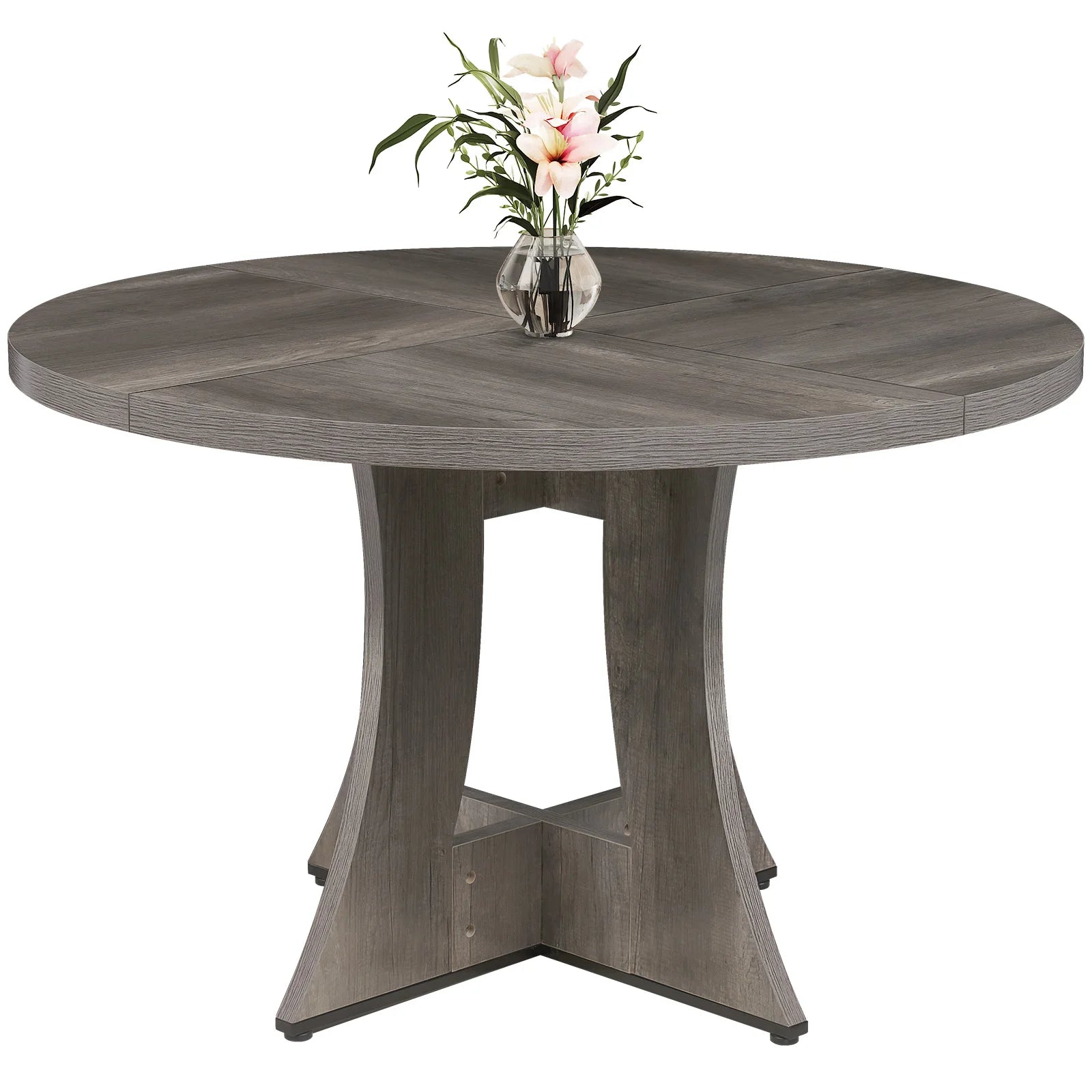 47 inch Round Dining Table for 4-6 People, Wooden Circle Dinner Table, Small Kitchen Table for Dining Room Living Room, Farmhouse Dinner Table for Restaurant Hotel, Grey / Brown