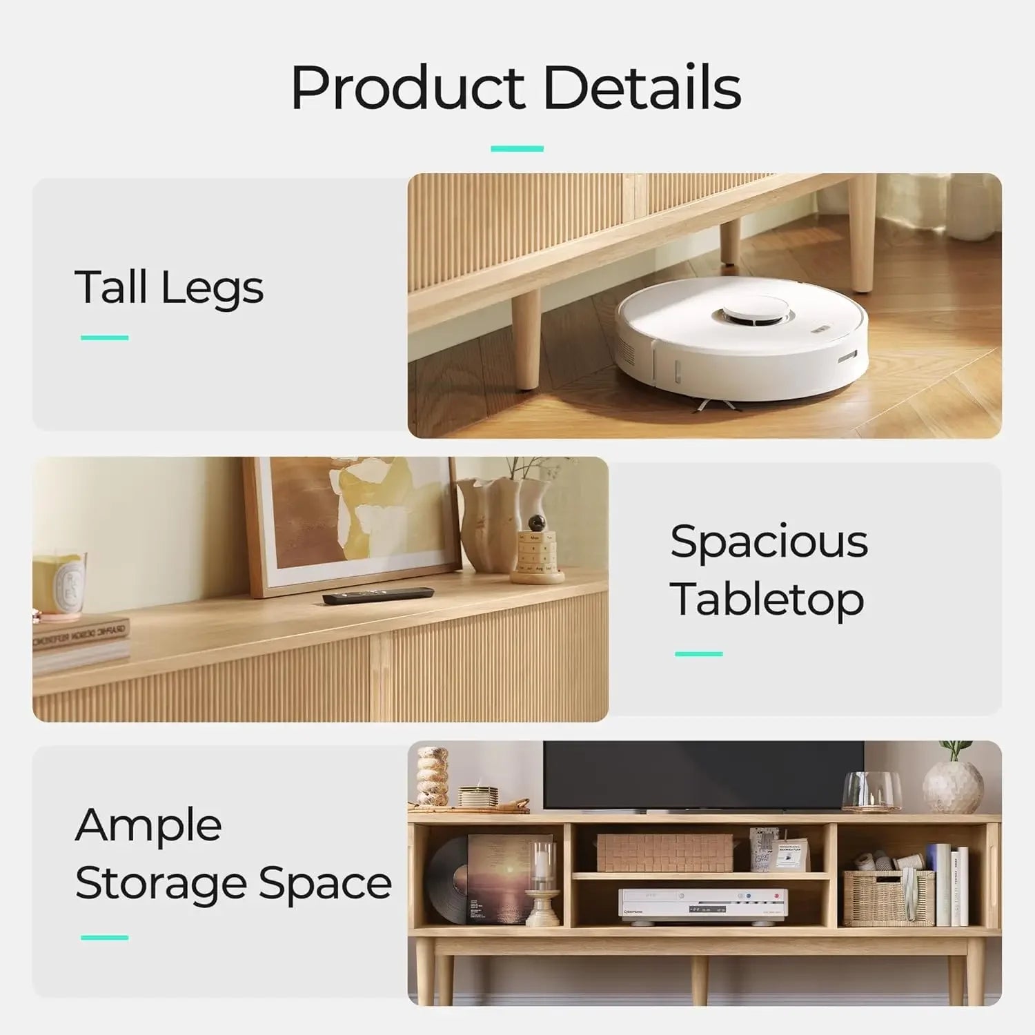 Fluted Tambour Sliding Door - With its distinctive curved and slatted tambour sliding door design in a mid-century color, this TV stand effortlessly integrates into your living room, bringing a touch of sophistication and a warm, welcoming ambiance to your space